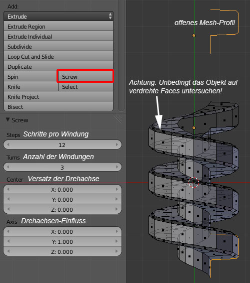 Hinweis: Auch Screw erzeugt einige doppelte Vertices.