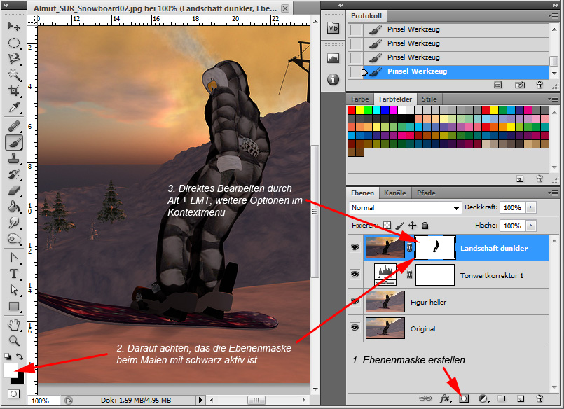 Strg + mit LMT direkt ins Bild klicken | Direktauswahl von Ebenen im Bild. |